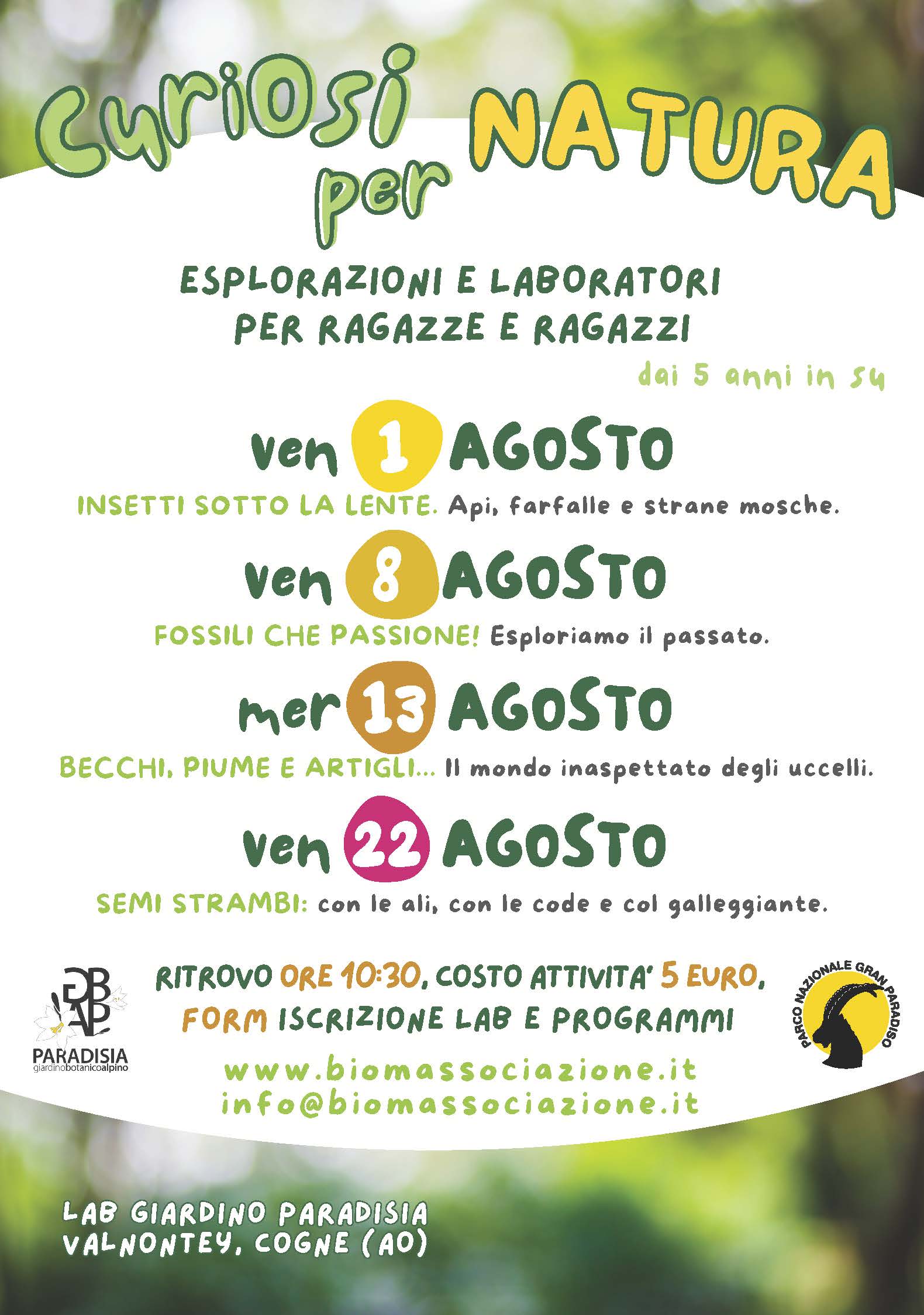 Al via “Curiosi per natura”, un ciclo di attività dedicate ai più giovani, che si terranno presso il Giardino botanico Paradisia di Valnontey, Cogne (AO).