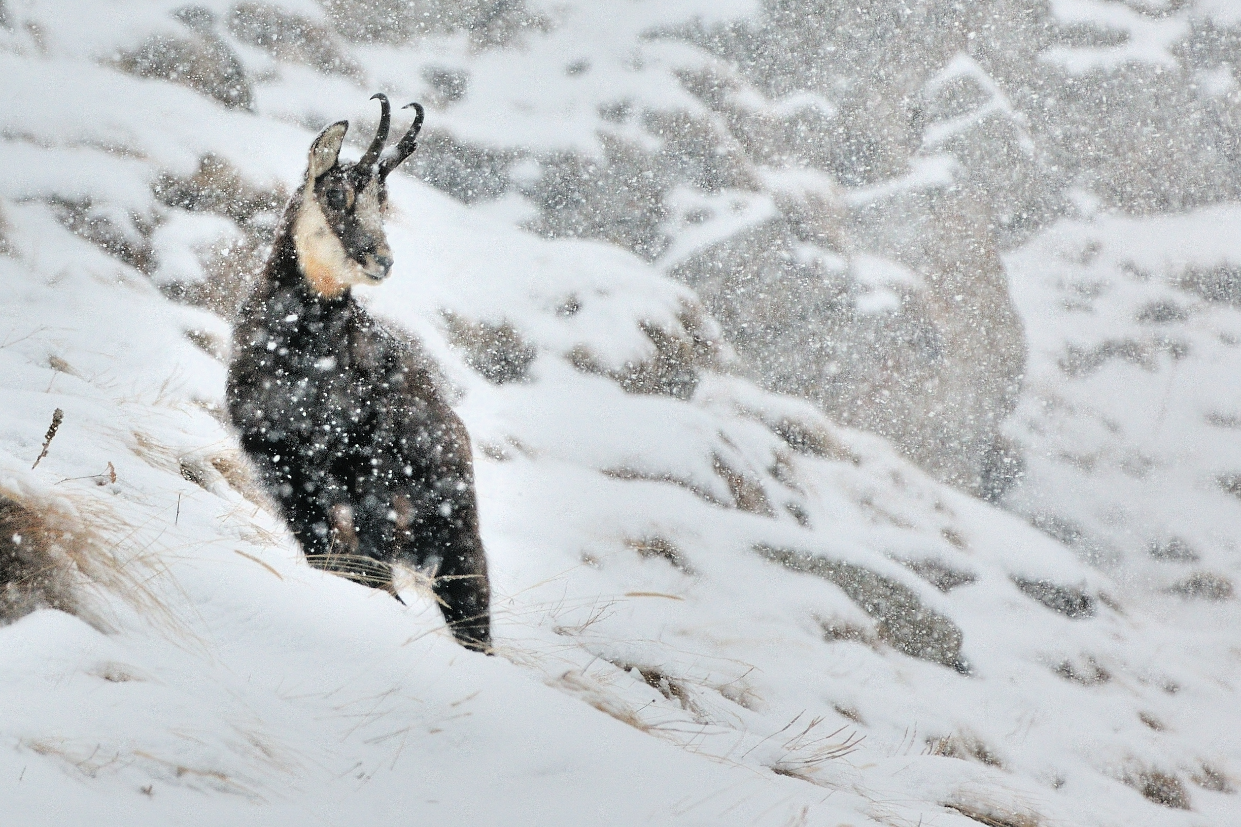 camoscio durante nevicata