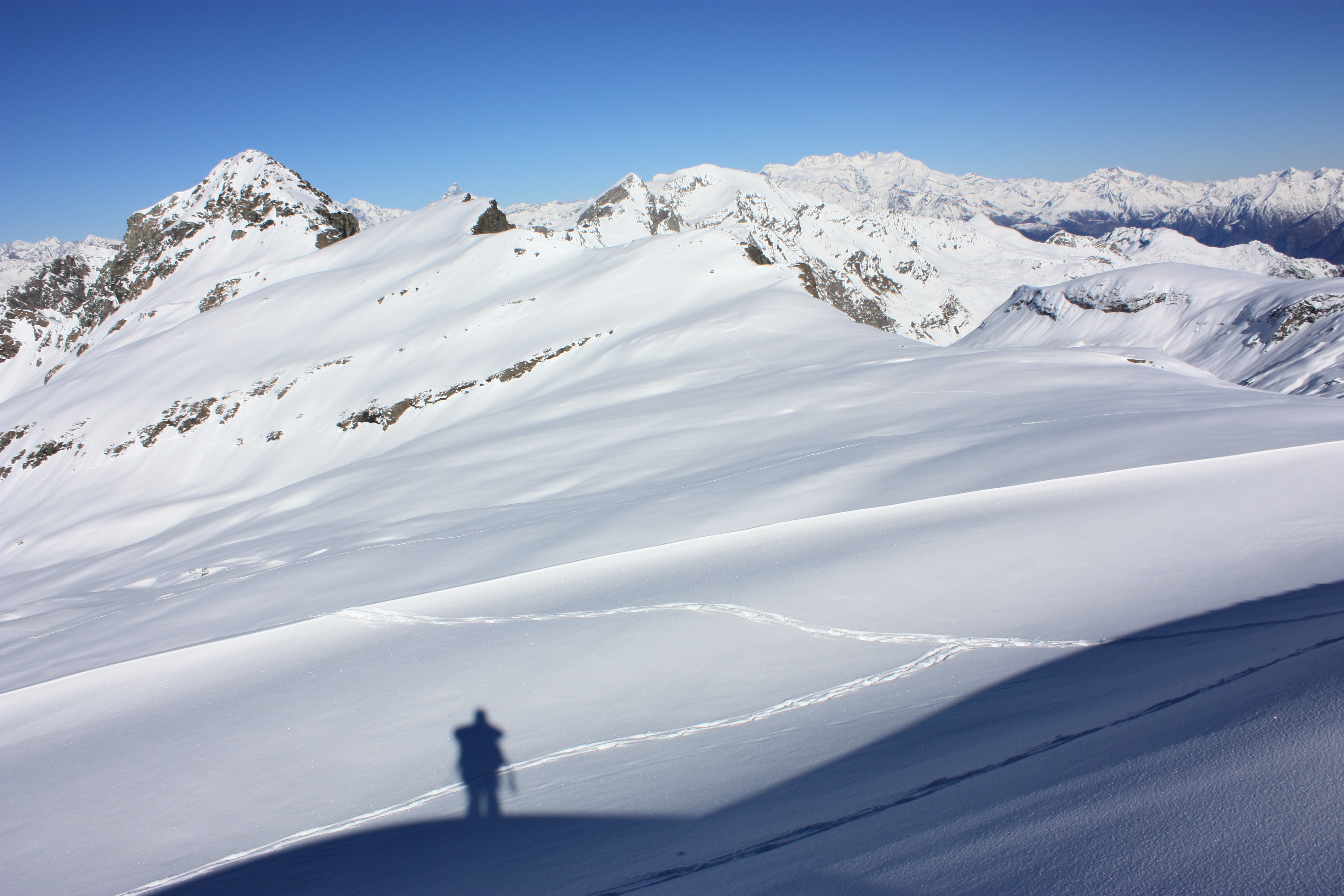 La mia ombra e tracce di camosci dalla Cima di Peradzà, al "confine" del PNGP