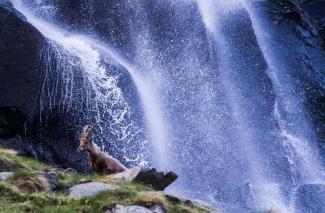 Stambecco sotto la cascata