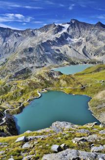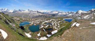 I laghi Agnel e Serrù ed il gruppo montuoso della Aiguille Rousse di 3482m