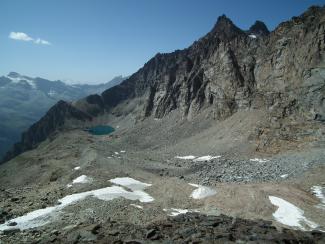 Ghiacciaio del Carro e morena dal colle delle Rocce