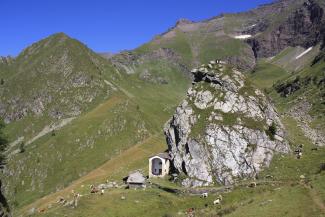 Santuario di San Besso 2019 m, con mucche al pascolo (Val Soana)