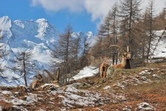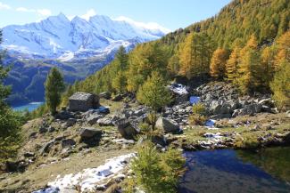 Vecchi alpeggi nei pressi dell'Alpe Ramajot, con sullo sfondo la Levanna Orientale