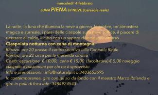 Ciaspolata notturna con cena di montagna, mercoledì 4 febbraio a Ceresole Reale, con le guide di Naturalp.