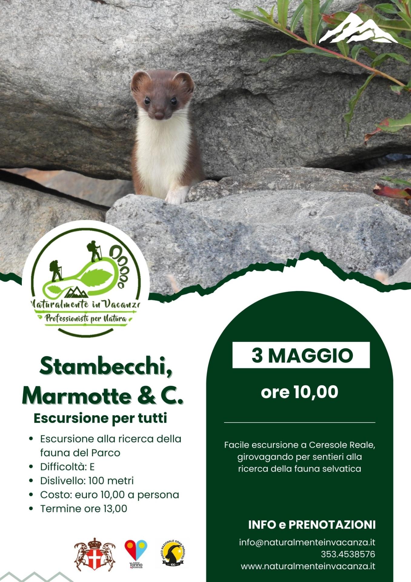 Escursione alla ricerca della fauna del Parco: stambecchi, camosci, marmotte ci attendono nell'incantevole scenario offerto da Pian Borgno, al cospetto del Gran Paradiso.