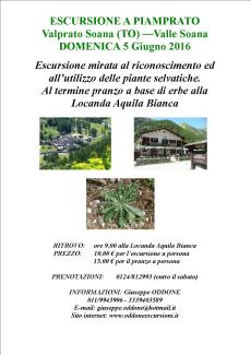 Domenica 5 Giugno, la Locanda Aquila Bianca, operatore con il Marchio di Qualità del Parco, propone un'escursione a Piamprato, in Valle Soana (TO), accompagnati da una guida naturalistica, dedicata alla scoperta delle piante selvatiche del territorio, e a seguire, un pranzo a base di erbe.