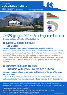 Il rifugio Guglielmo Jervis di Ceresole Reale (TO) propone l'iniziativa "Montagne e libertà", realizzata nell'ambito del Festival delle Alpi 2015. La due giorni è promossa dai gestori del rifugio e dalla sezione di Ivrea del Cai.