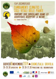 Giovedì 6 novembre alla Maison de la Grivola di Cogne (AO) verrà proiettato il film documentario "Cambiamenti climatici e cicli vitali delle piante" di Francois Xavier Vives. L'iniziativa è realizzata nell'ambito delle giornate conclusive del progetto Interreg Alcotra n° 227 “e-PHENO Reti fenologiche nelle Alpi”