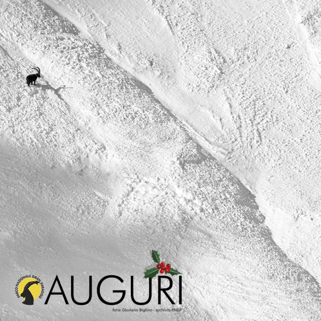 In questo periodo di festa, quando la neve avvolge le nostre montagne in un candido abbraccio, lo stambecco – simbolo del nostro Parco – continua la sua vita tra le vette, lasciando tracce silenziose sul manto bianco.