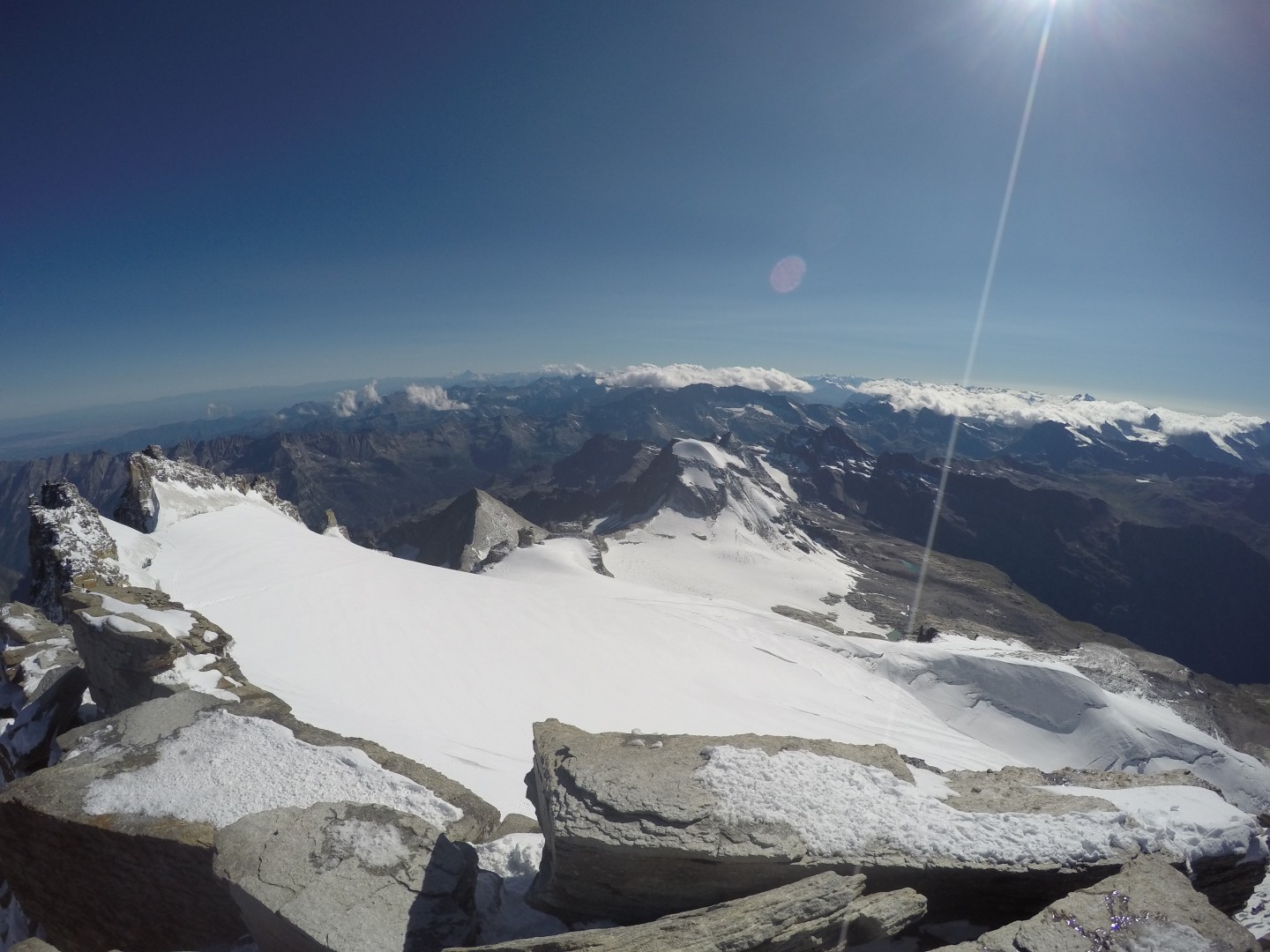 Nelle foto sottostanti, realizzate dall'ispettore Stefano Cerise, la situazione del ghiacciaio del Trajo visto dalla vetta della Grivola, un momento delle rilevazioni dei guardaparco al ghiacciaio del Grand Etret e il ghiacciaio del Gran Paradiso visto dalla cima del massiccio a 4.061 metri