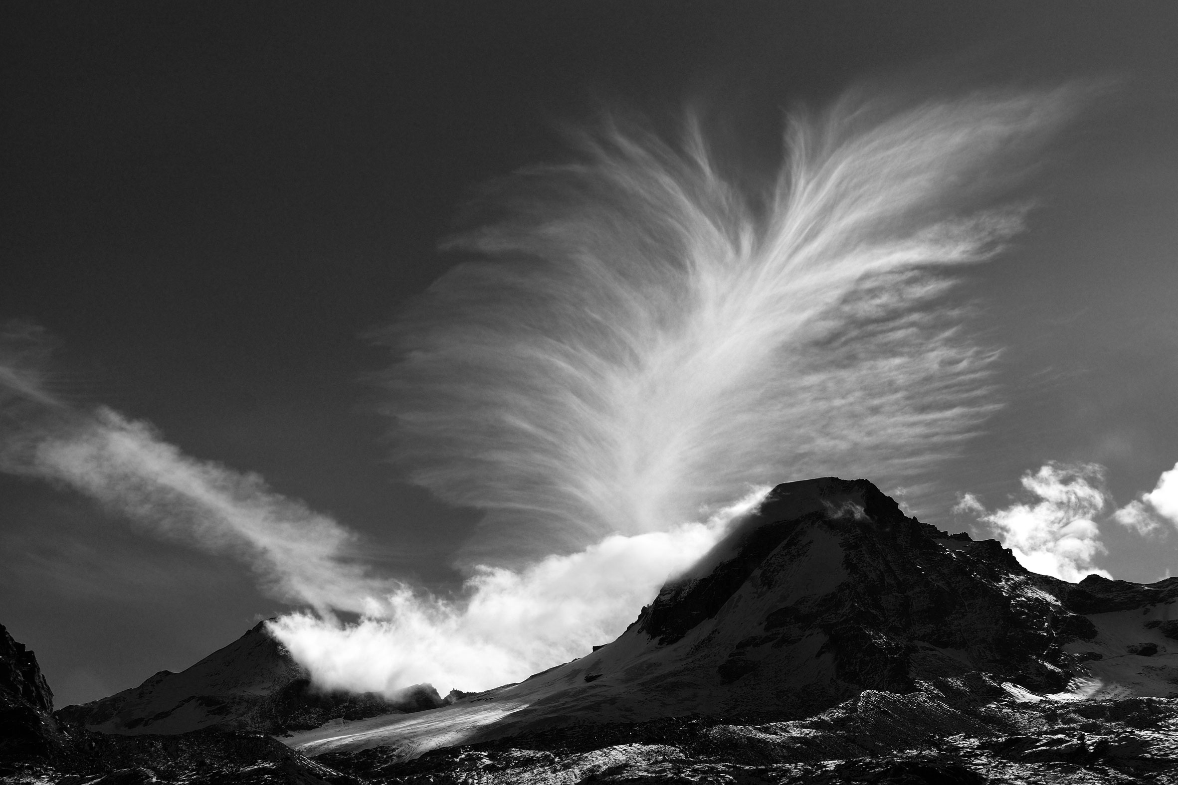 diventa protagonista la particolare nube che impennacchia le montagne della