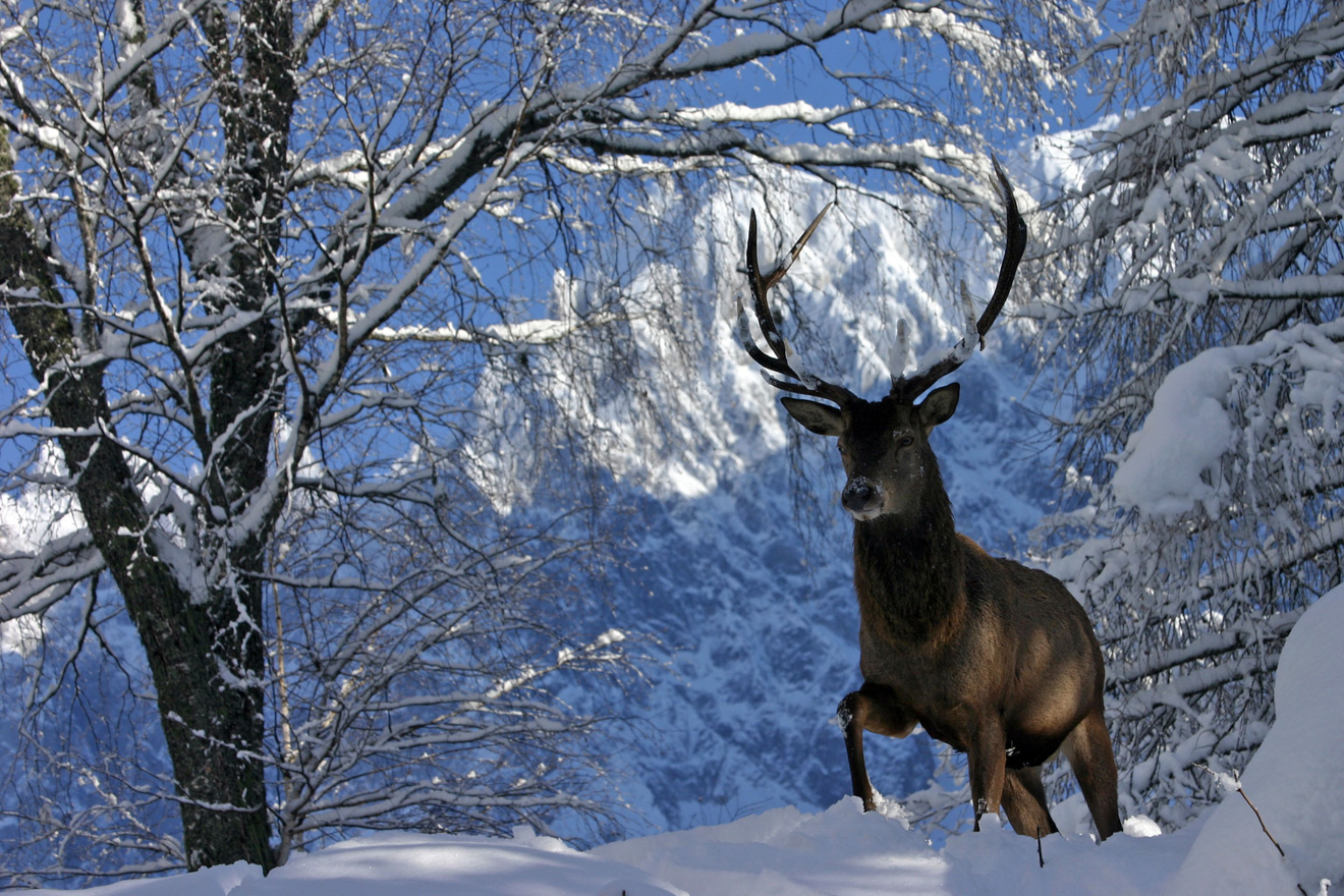 valorizzati dall'inserimento nel loro ambiente naturale. “Cerf neige – Cervo