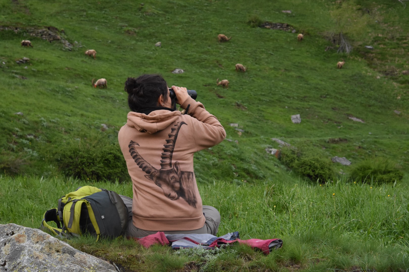 Alice Brambilla che si occupa dello studio a lungo termine sullo stambecco alpino nell'area di Levionaz, Valsavarenche