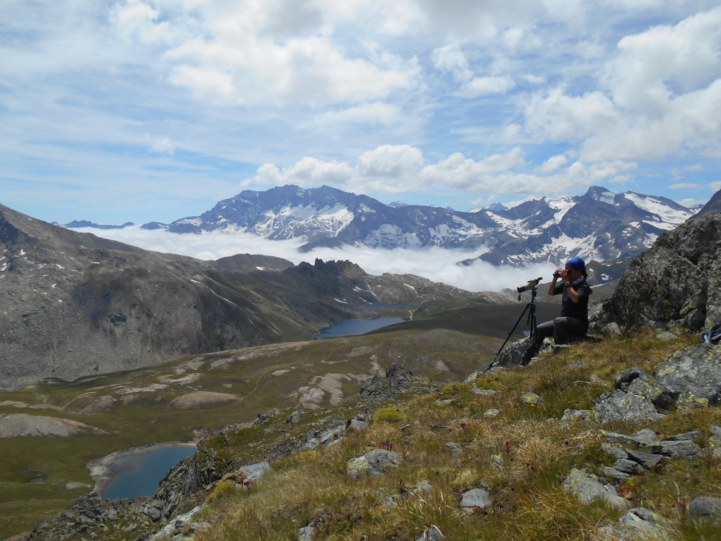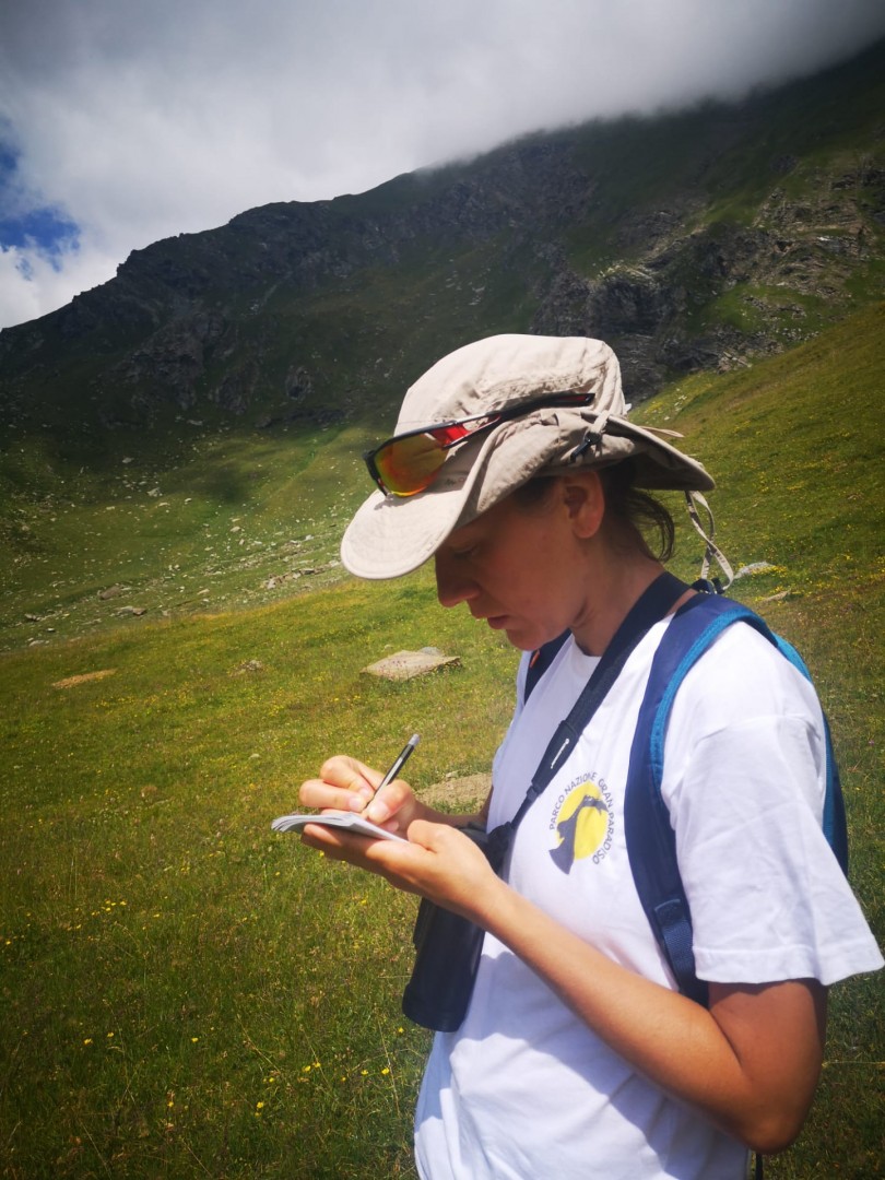Antonella Cotza, partecipa allo studio a lungo termine sul comportamento sociale,  sull'uso dello spazio e sull’ecologia del camoscio alpino, nell’area di studio dell’alta Valle Orco.
