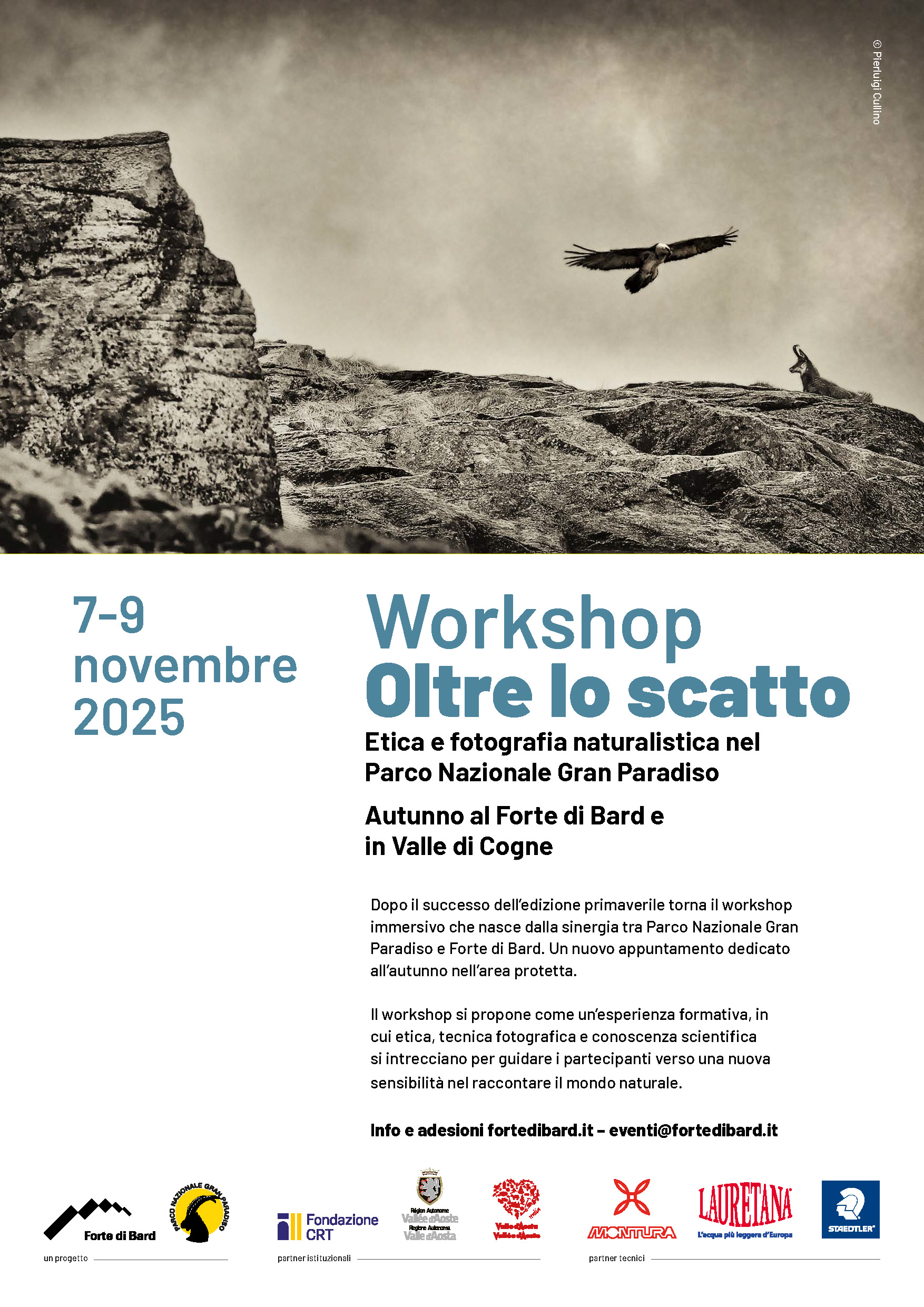 Dopo il successo della scorsa edizione primaverile, torna “Oltre lo Scatto”, il workshop fotografico immersivo frutto della sinergia tra Parco Nazionale Gran Paradiso e Forte di Bard. Dal 7 al 9 novembre 2025, un nuovo appuntamento dedicato all’autunno nel Parco offrirà a fotografi naturalisti, escursionisti e appassionati di natura un’esperienza unica nel suo genere, finalizzata a promuovere un approccio alla fotografia che non si limiti all’immagine, ma che stimoli riflessioni sull’ambiente in cui viviamo.