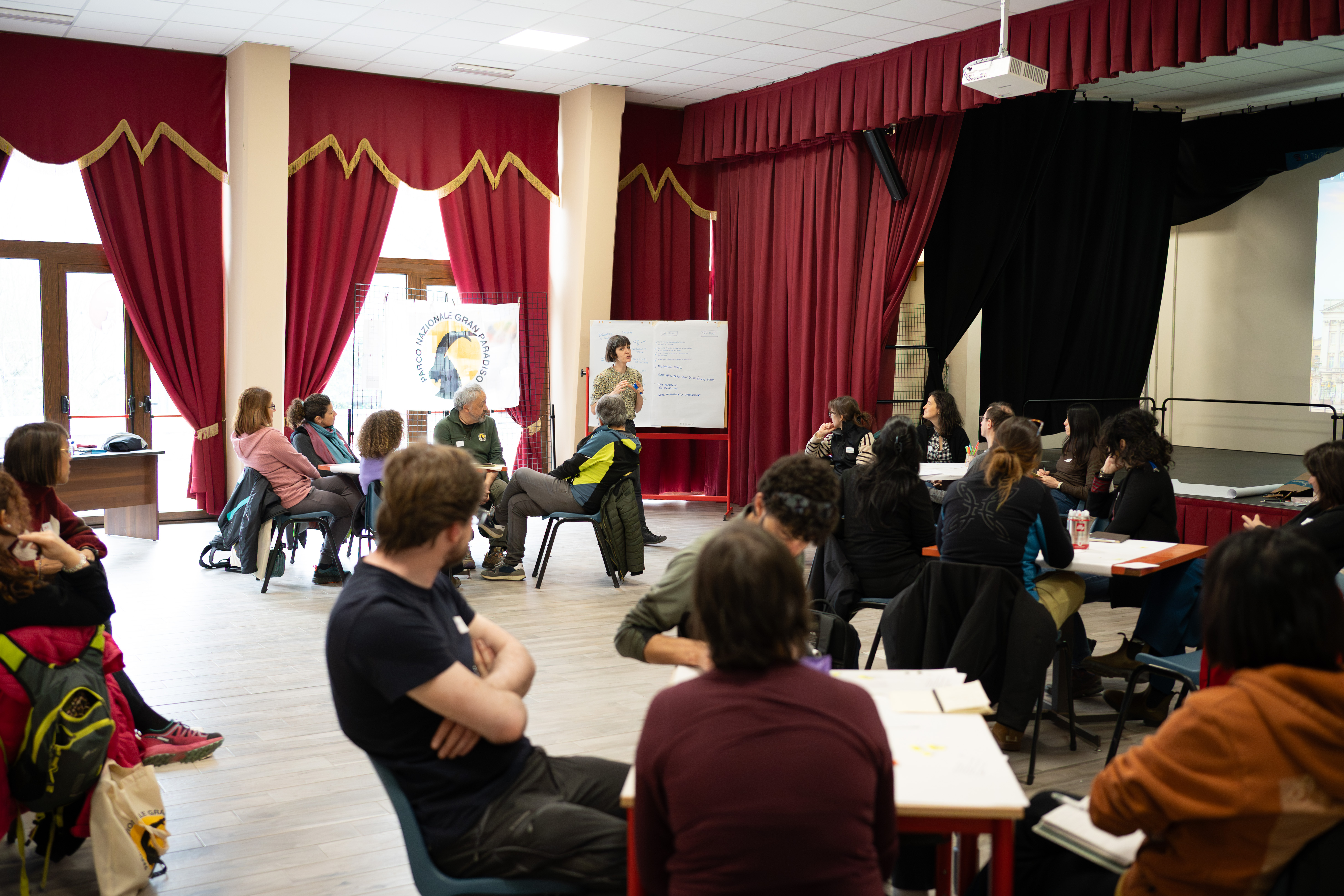 Ventisette partecipanti provenienti da aree protette, università ed enti di Piemonte, Valle d'Aosta, Trentino e Lombardia hanno trascorso tre giorni immersi in un'esperienza formativa intensa e residenziale. Il filo conduttore è stato l'arte di comunicare la scienza: venti ore di formazione pratica su narrazione orale e teatrale, presenza scenica e uso del corpo come strumento comunicativo, tecniche di facilitazione dei gruppi, gestione dei processi partecipativi e conduzione di tavoli di lavoro con stakeholder diversi. Temi che per chi lavora in un'area protetta, in un museo o in un ente di ricerca non sono mai astratti — sono la materia viva del lavoro quotidiano.