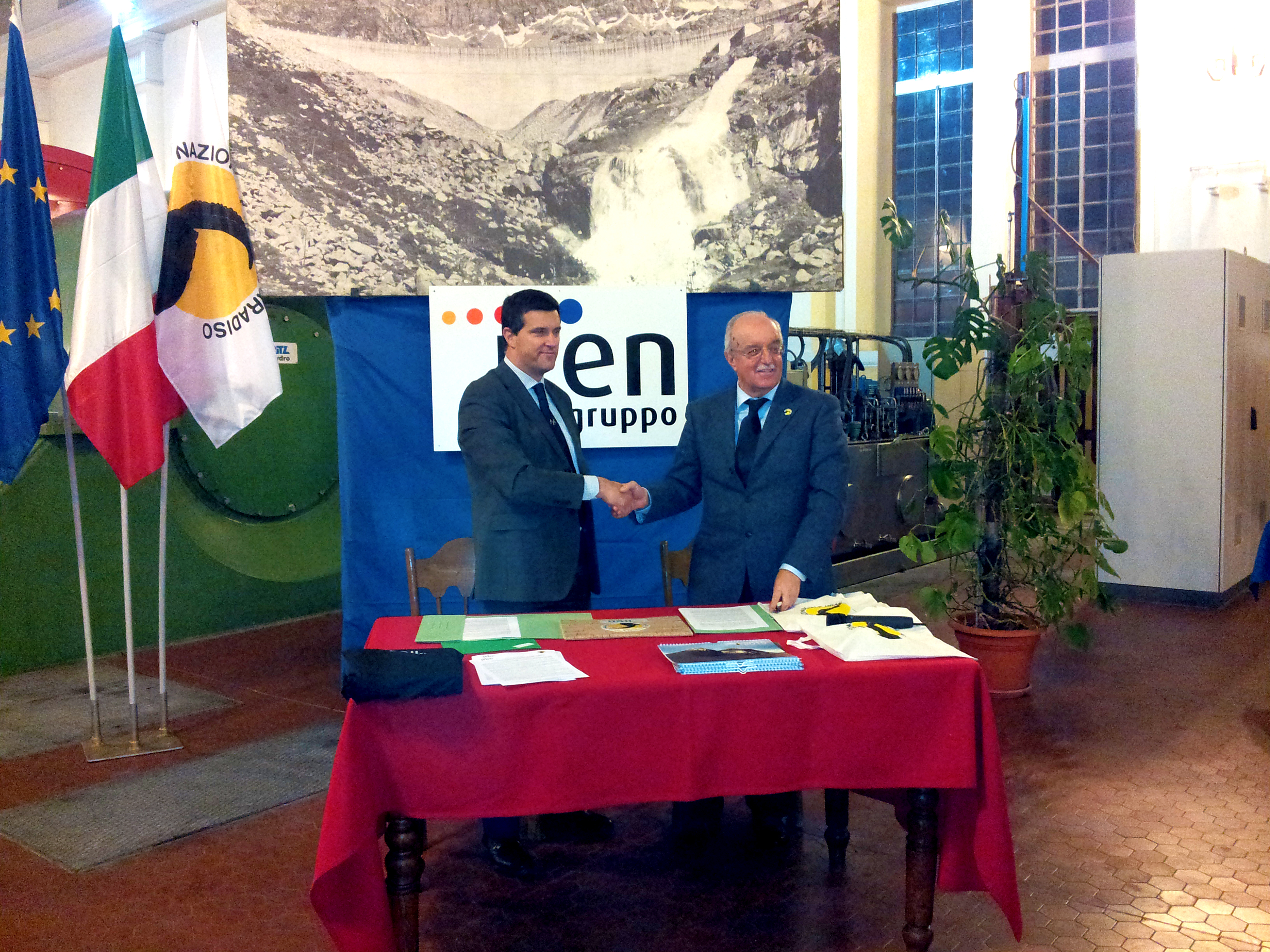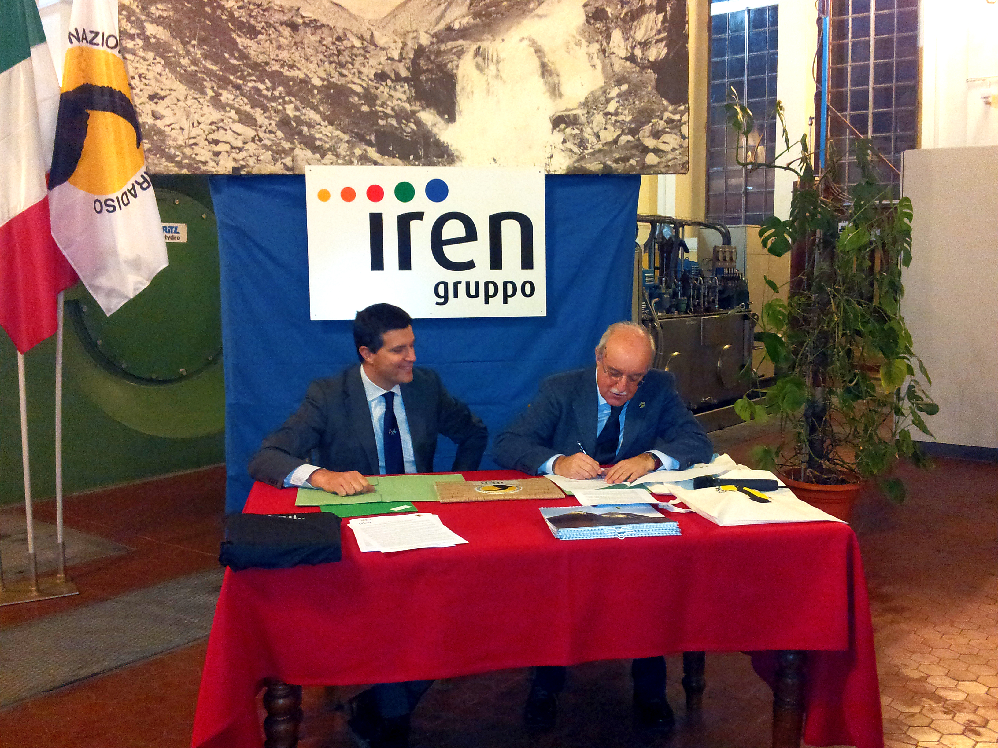 L'Amministratore Delegato di Iren Energia Giuseppe Bergesio e il Presidente del Parco Nazionale Gran Paradiso Italo Cerise hanno firmato ieri, mercoledì 18 febbraio, presso la sala macchine della centrale idroelettrica Iren di Rosone a Locana, una convenzione concernente l'esercizio delle attività degli impianti Iren presenti all’interno dell’area protetta.