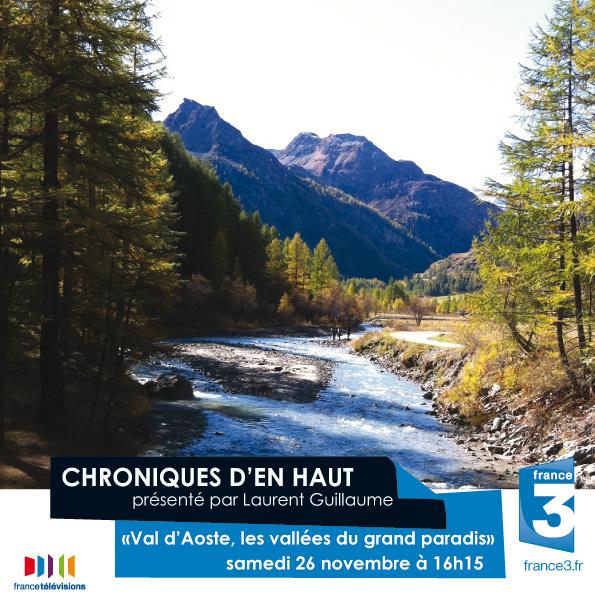 Sabato 26 novembre andrà in onda su France 3, terzo canale della televisione pubblica transalpina, una puntata del programma "Chroniques d'en Haut" dedicata alle valli valdostane del Parco Nazionale Gran Paradiso