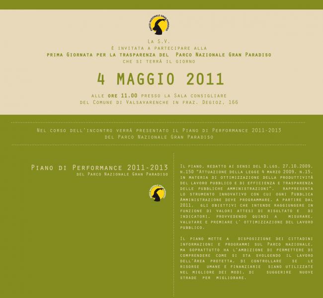 Mercoledì 4 maggio alle ore 11 presso la Sala consiliare del Comune di Valsavarenche si terrà la prima giornata per la trasparenza del Parco Nazionale Gran Paradiso.