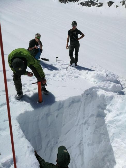 Giovedì 30 maggio sono state effettuate le misurazioni al ghiacciaio del Grand Etrèt, nel versante valdostano del Parco. Sono stati 12 i guardaparco impegnati nelle rilevazioni, gli accumuli registrati nei cinque pozzi, scavati in prossimità delle paline ablatometriche, hanno visto un minimo di 470 ed un massimo di 550 cm, per un totale stimato di 871.600 metri cubi di neve caduta in un anno.