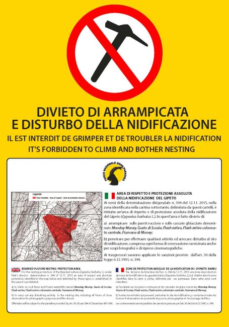 A seguito della della determinazione dirigenziale n. 394 del 12.11.2015 è stata istituita un'area di rispetto e di protezione assoluta della nidicazione del Gipeto (Gypaetus barbatus L.) in Valnontey (Cogne).