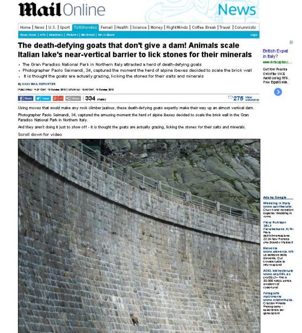 L'edizione online del Daily Mail, il secondo quotidiano per numero di vendite in Inghilterra, ha dedicato un articolo ad una serie di foto scattate alla diga del lago Valsoera, nel versante piemontese del Parco, che ritraggono alcuni stambecchi inerpicati sulla stessa mentre leccano il minerale salino presente tra le fessure