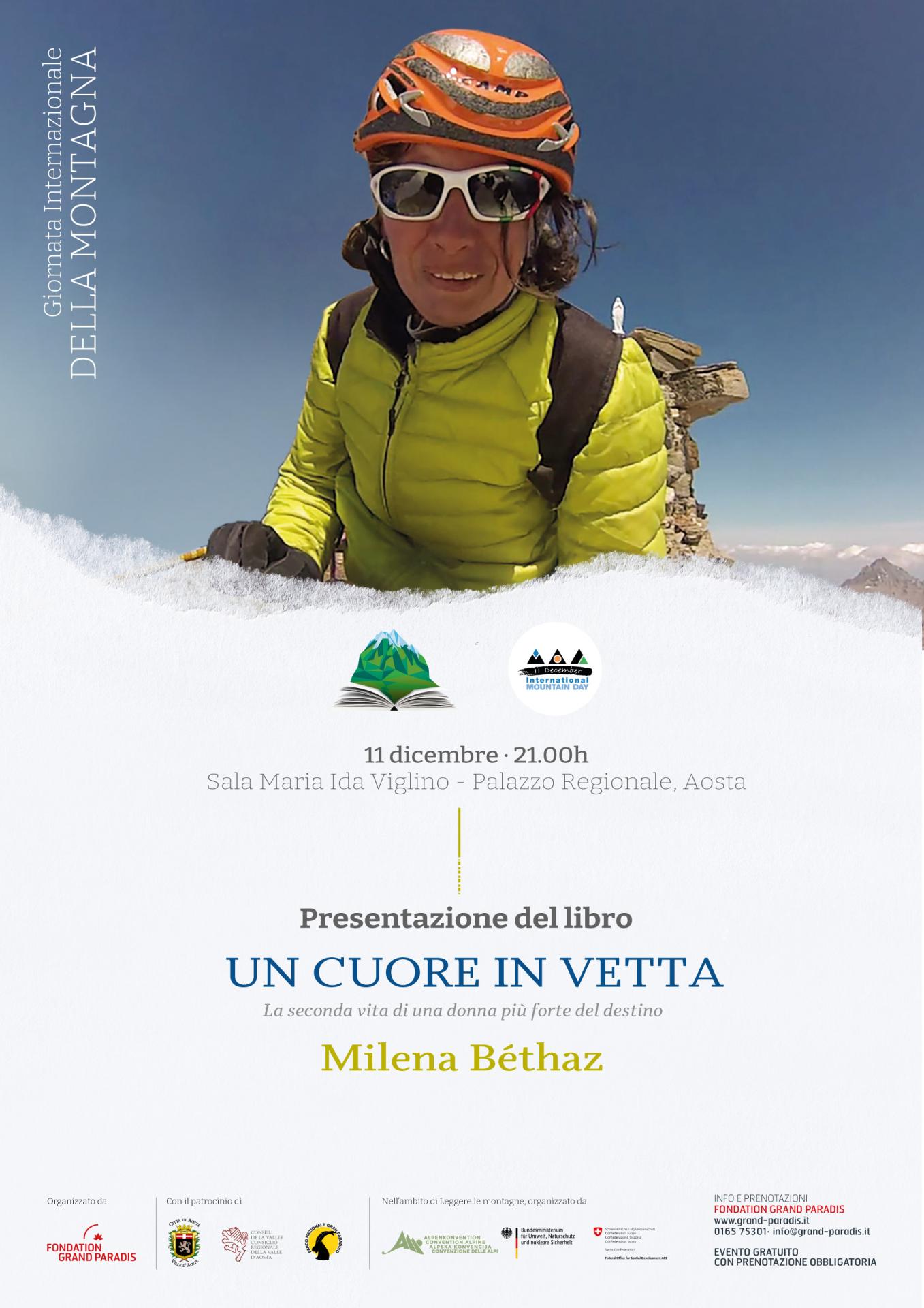 Domenica 11 dicembre 2022 alle ore 21 presso la sala Maria Ida Viglino del palazzo regionale di Aosta, si terrà la presentazione del libro di Milena Béthaz "Un cuore in vetta. La seconda vita di una donna più forte del destino" (TS edizioni).