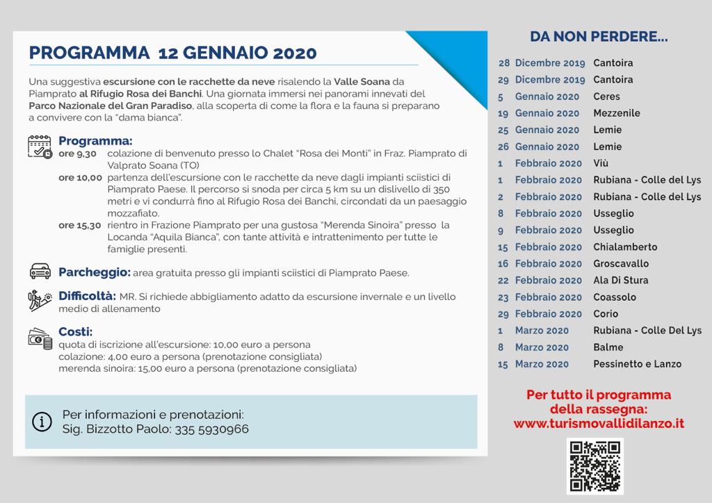 Domenica 12 gennaio non perdete "Una Giornata in Paradiso: Ciaspolata nel Parco Nazionale del Gran Paradiso", una suggestiva escursione con le racchette da neve risalendo la Valle Soana da Piamprato al rifugio Rosa dei Banchi.