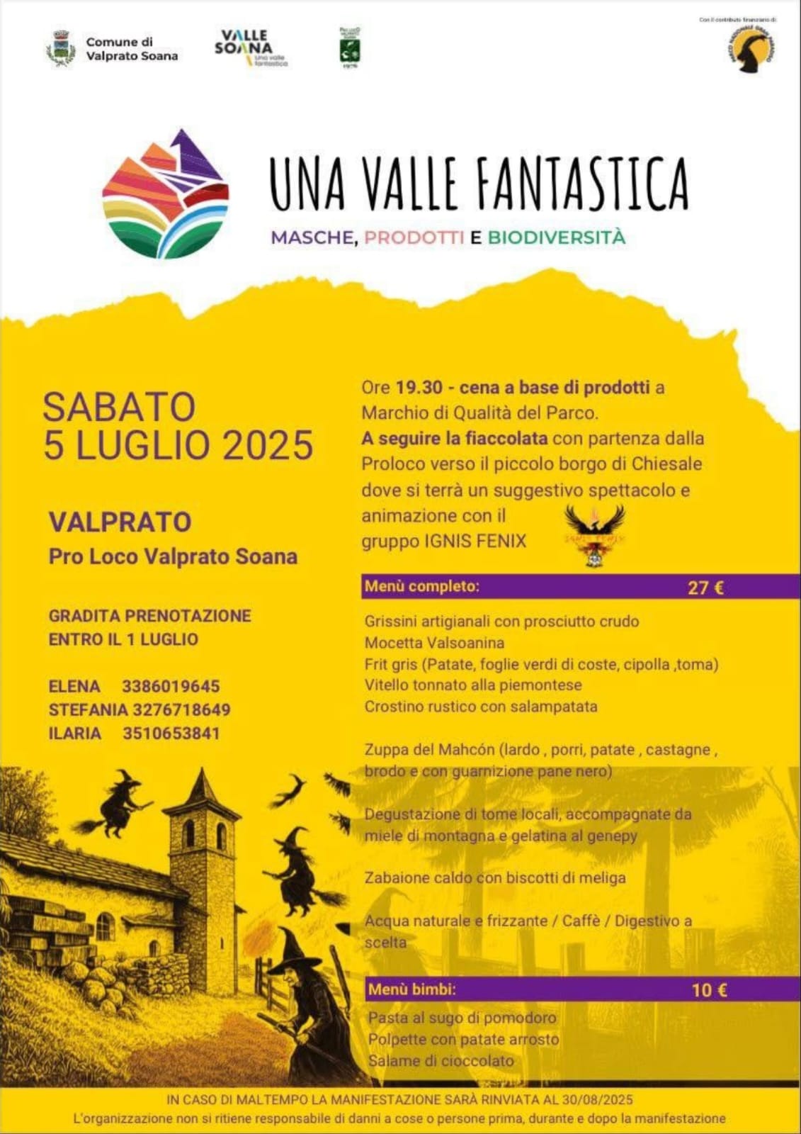a seguire fiaccolata con partenza pro loco per raggiungere la borgata di Chiesale con spettacolo e animazione nella borgata valsoanina delle masche con il gruppo IGNIS FENIX