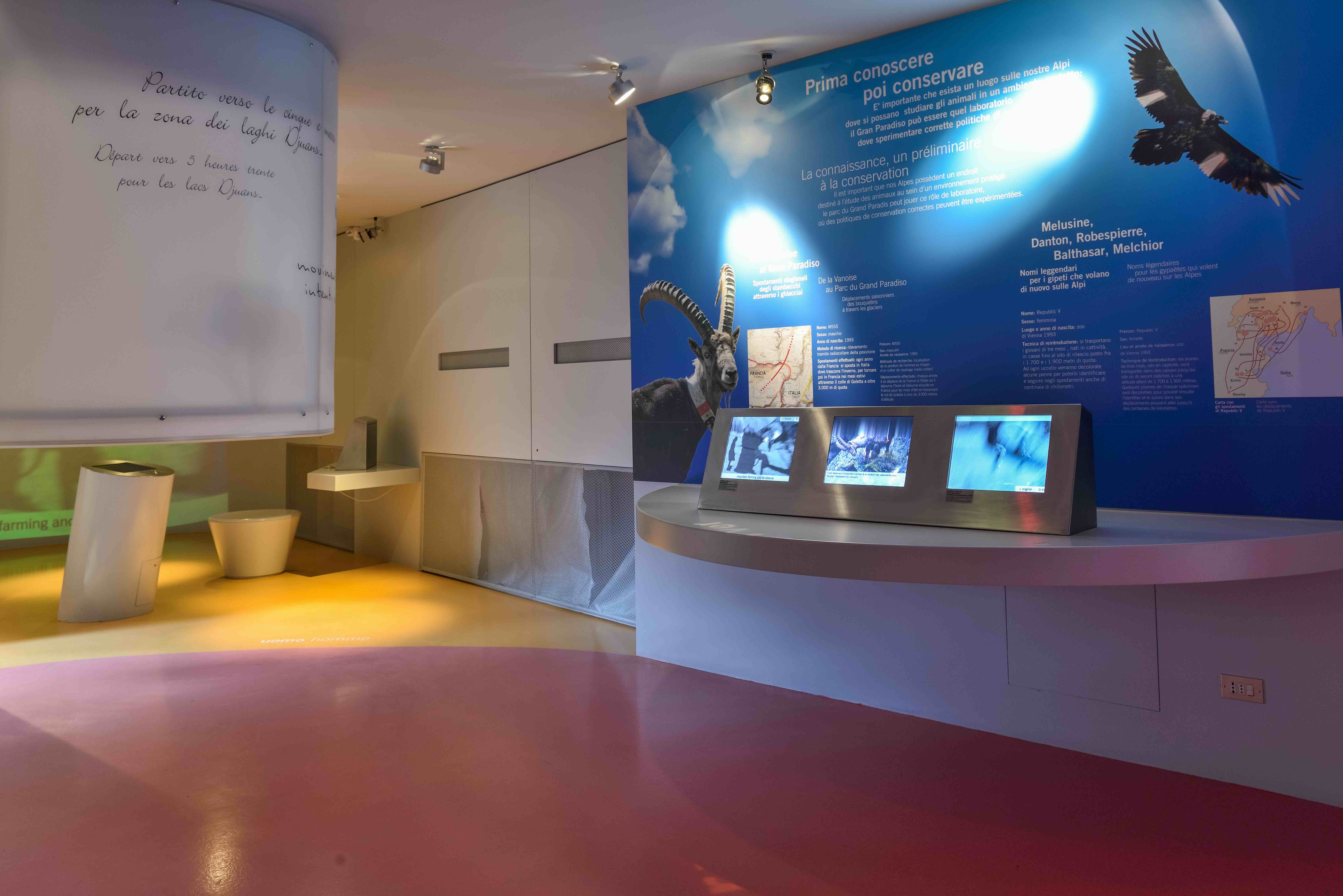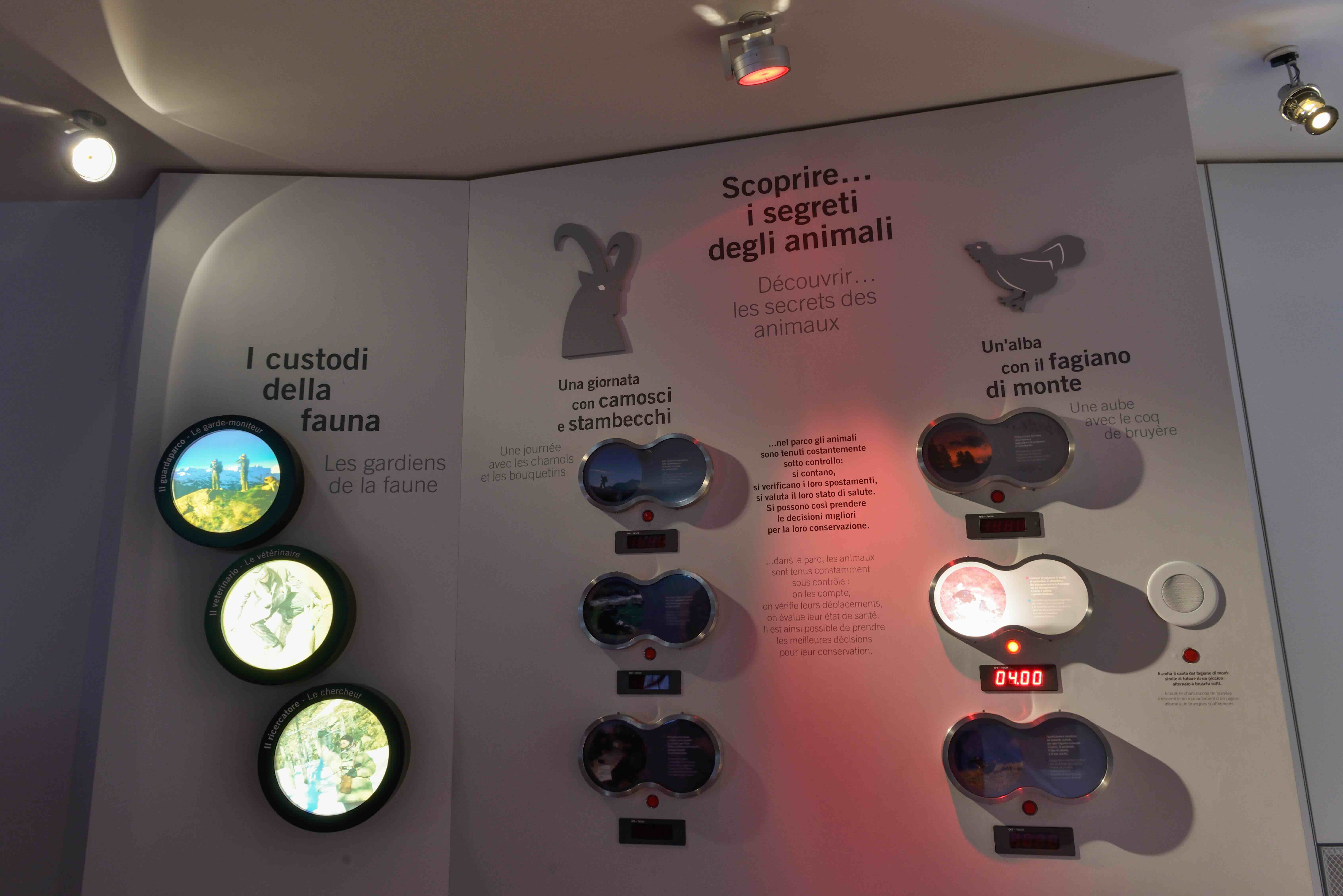 Il centro ospita inoltre due allestimenti tematici: uno dedicato al Lupo e uno allo Stambecco. In queste postazioni immersive è possibile ammirare esemplari tassidermizzati e immergersi nel racconto delle caratteristiche di queste specie.