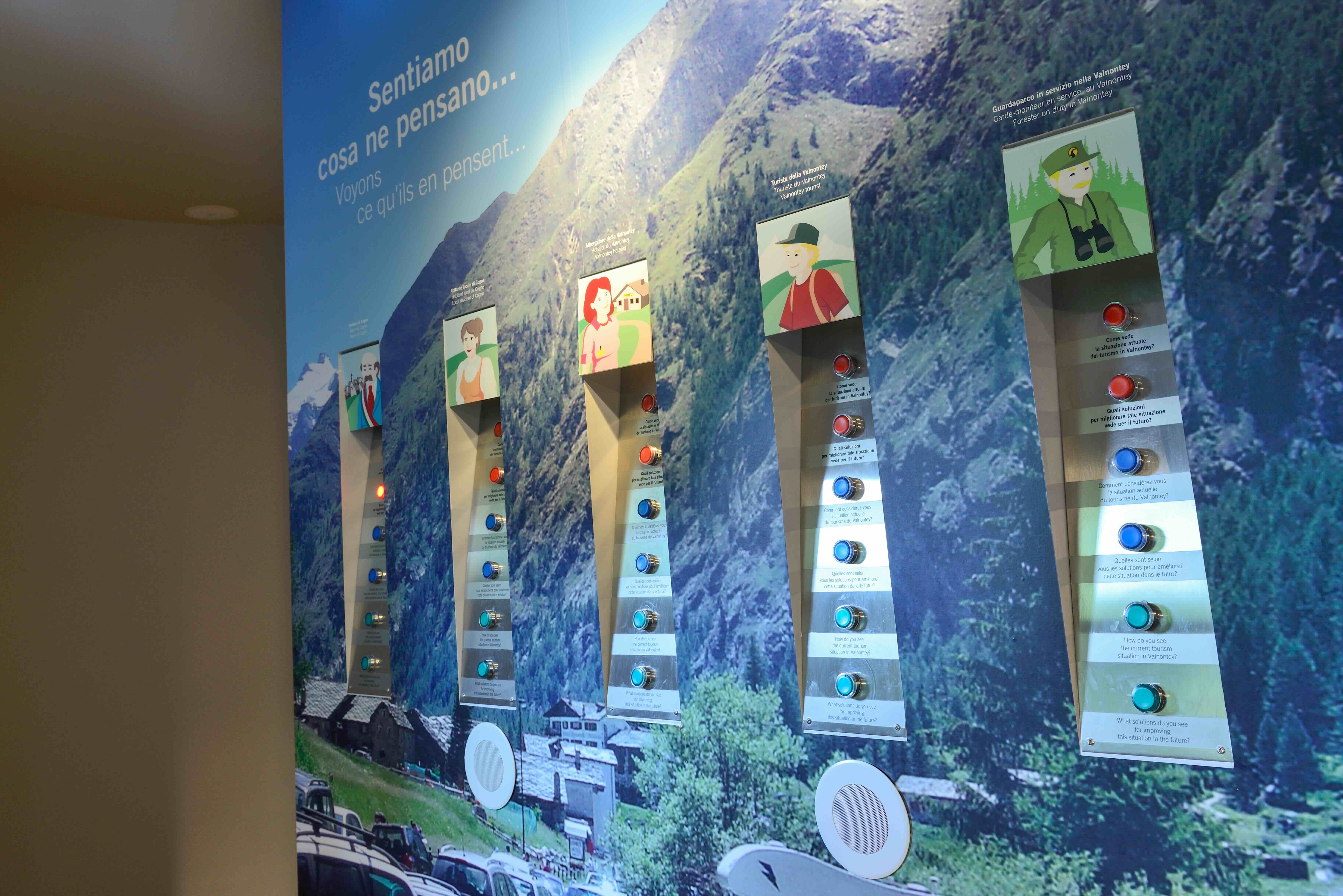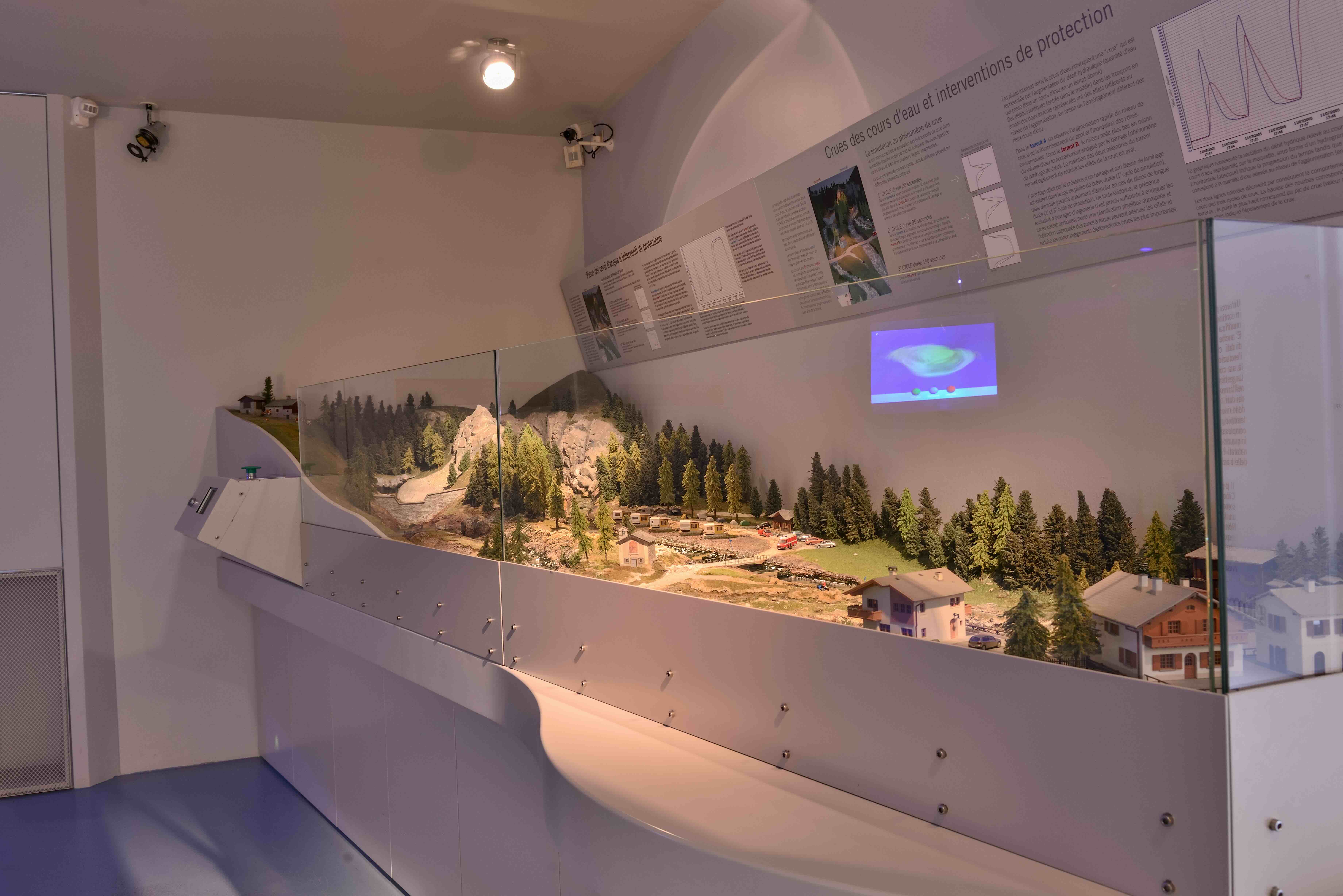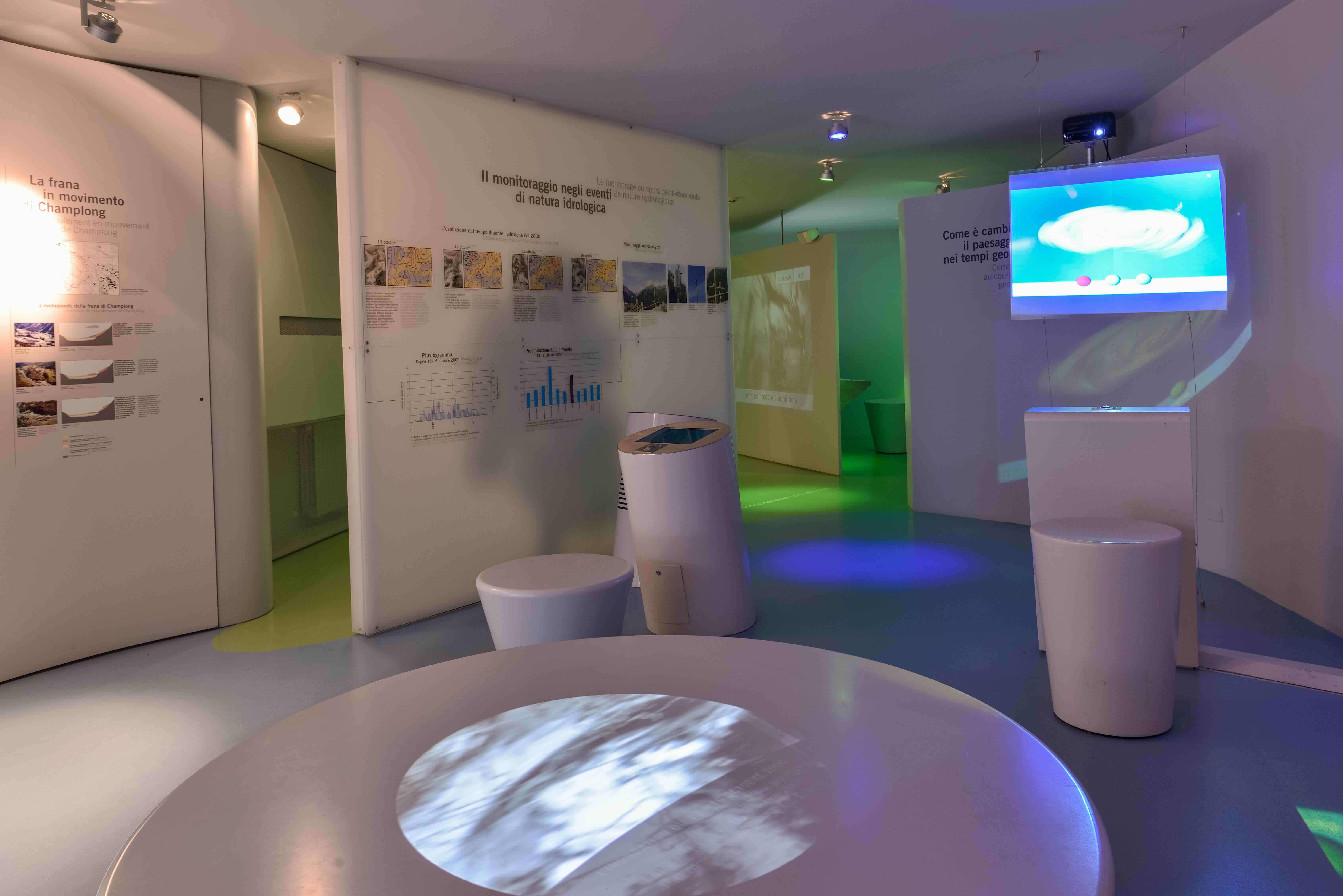 L'evoluzione complessa e dinamica del Parco è presentata come in un laboratorio di sperimentazione, con modelli esplicativi, sistemi multimediali e giochi interattivi, numerosi giochi di ruolo, e un originale "spazio sensoriale" che offre ai visitatori la possibilità di apprezzare i profumi della natura e sentire i suoni caratteristici del bosco. I temi sviluppati nello spazio del Centro Visitatori di Cogne sono: l'Acqua, con modelli che mostrano gli effetti dell'acqua sul territorio, illustrano alcuni eventi alluvionali e descrivono l'interazione tra gli insediamenti umani e gli aspetti idrogeologici, il Bosco e il Pascolo , con un'immersione "multimediale" nella vita del boscaiolo e la simulazione di scelte importanti per il mantenimento del bosco, la Fauna e l'Uomo, in cui approfondire le modalità di interazione tra uomo e animali. Il Centro oltre al naturale destinatario, il visitatore appassionato di natura, si rivolge anche alle scuole, in quanto l'esposizione, per gli argomenti trattati e e modalità di utilizzo interattivo, ben si addice alle visite di gruppi di studenti. Negli orari di apertura il Centro è presidiato da una Guida del Parco, in grado di fornire informazioni competenti e dettagliate per soddisfare ogni curiosità.
